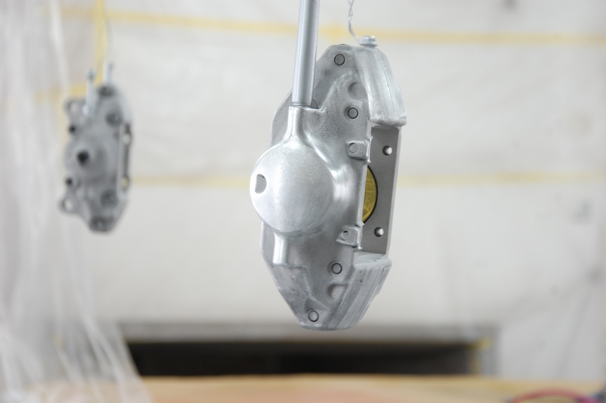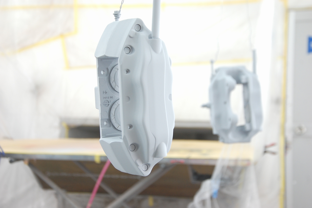 こちらも経年劣化で剥がれてしまっていますので、こちらは艶消し黒への塗装で承っています。同じく「研磨→プライマー塗布→サフェーサー塗布→完全硬化→研磨」といった下地処理を行います。