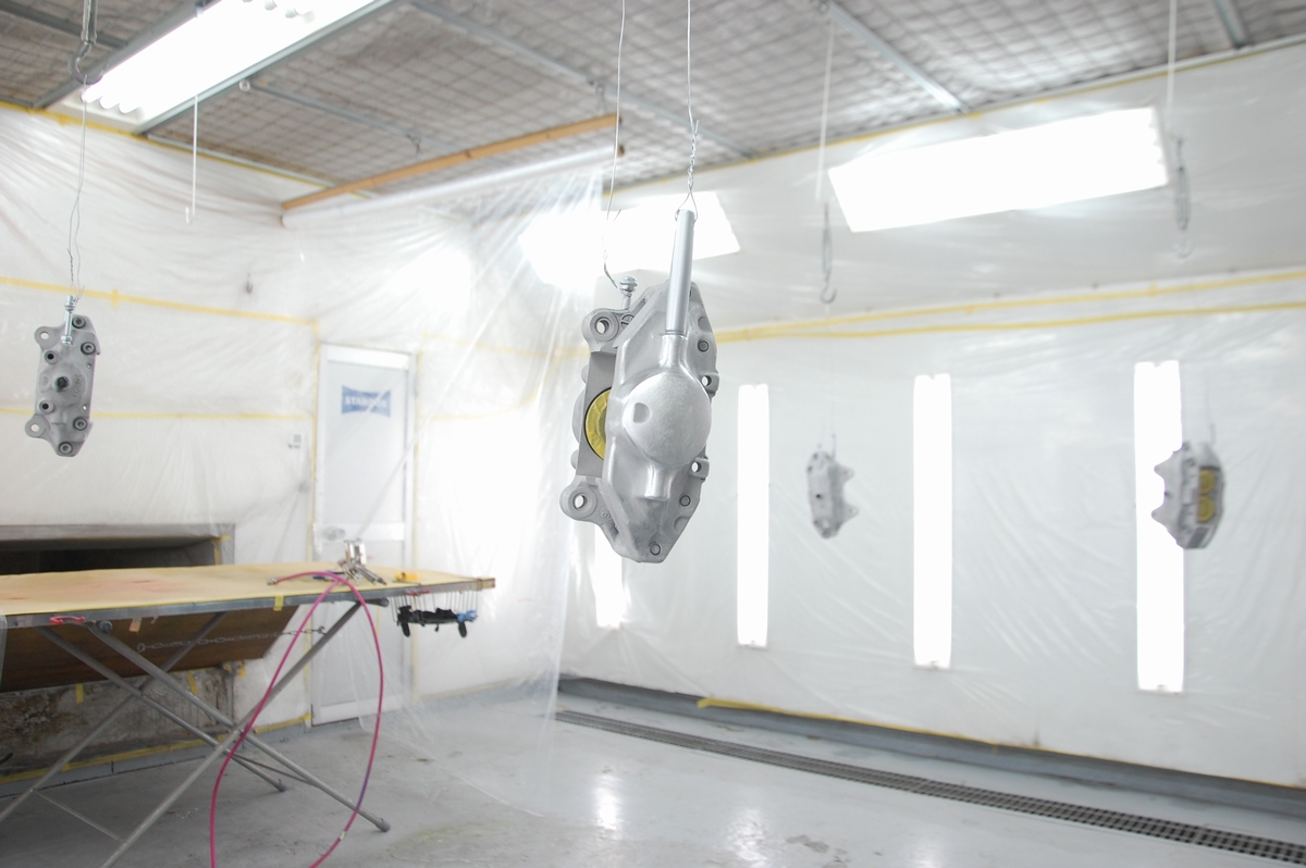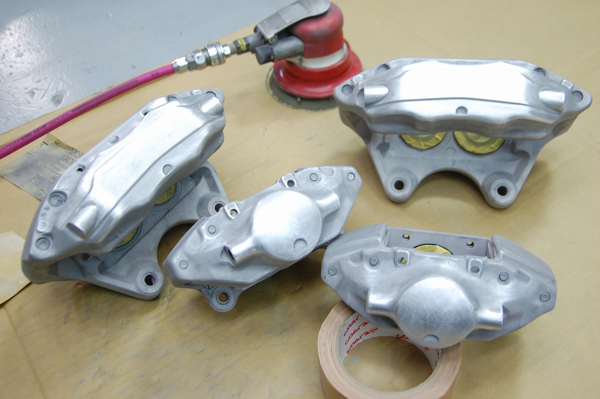現状塗装が剥がれているのは何かしら固い物などに当たって塗膜が剥がれたという事が理由ですが、それの他に塗膜の密着性も関係しています。なので既存の塗膜は全部剥がし、「研磨→プライマー塗布→サフェーサー塗布→完全硬化→研磨」といった下地処理を行ってからの上塗りとします。