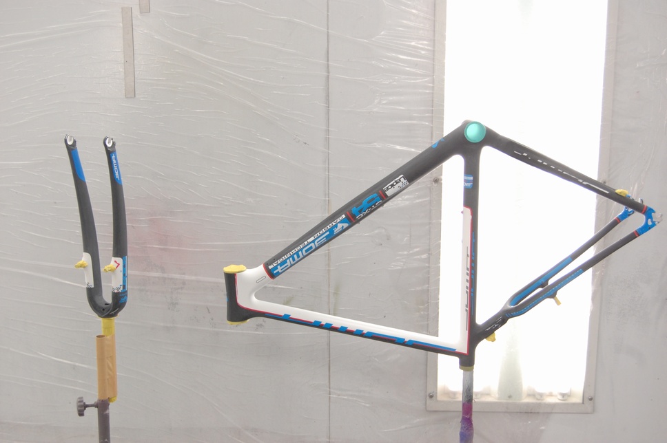 勿論ご要望により「旧塗膜は完全に剥がして欲しい」という事でも対応は可能です。以前行ったcannondaleのカーボンフレームのオーナー様は重量増にかなり神経を使っておりましたので、下地の段階ではかなりシビアに重量を管理して作業しました。ただし費用もそれなりに高くなりますので(およそ倍…)必要に応じて選択されると良いかもですね。