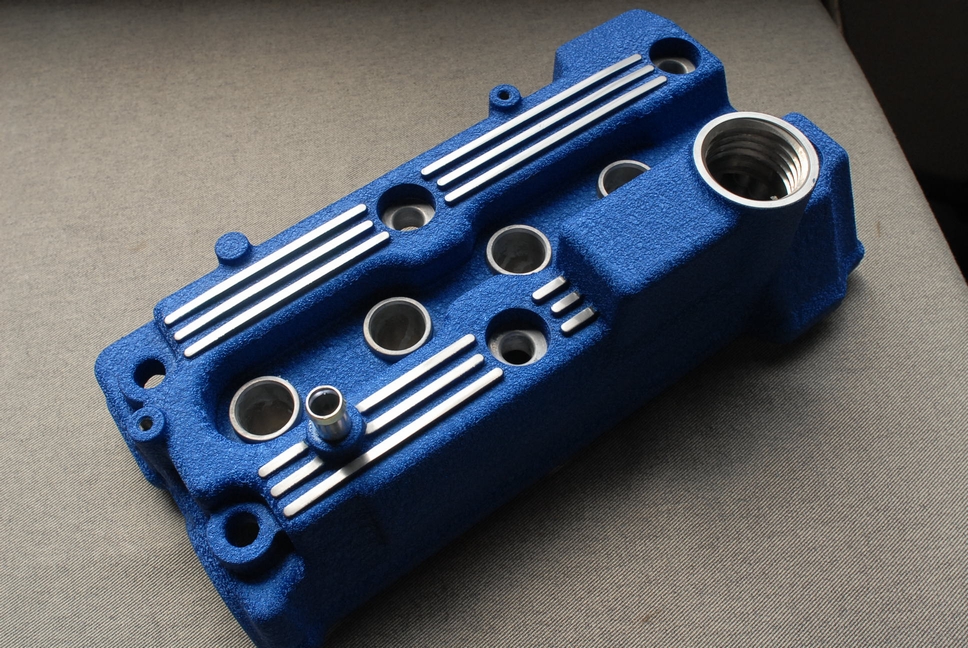 こちらは今までも何回か施工例のあるスバルプレオのヘッドカバーです。軽のエンジンですからサイズは小さいのですが普通に四気筒なのでスモールライトで小さくしたような感じです。中々味があるデザインですよね。