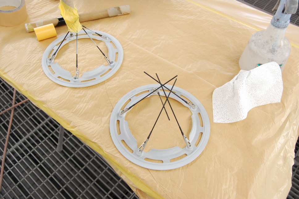 ここで気が付いたのですがこのチェーンカバー、自転車に装着されても内側は隙間から見えてしまうのでは?と思った次第です。普通のパーツだとこういったケースでは内側は見えませんから色はフチまで塗ればOKの筈ですが、今回の物だとそう言う訳にはいきませんよね。危ないところでした・・・。