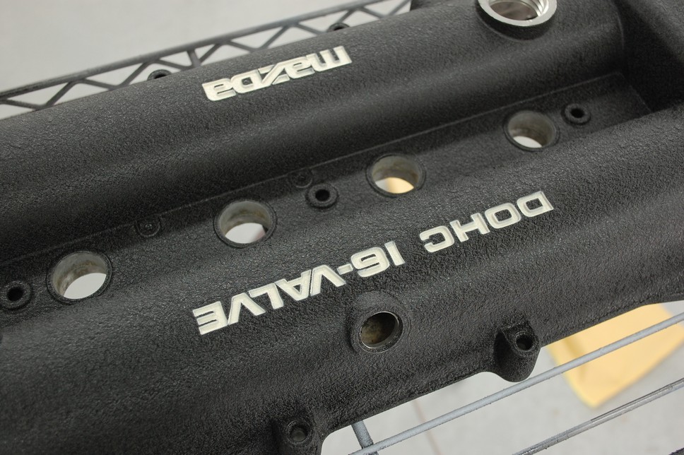 そして文字入れ完了です!・・・と思いきや、こちらのDOHCの方がどうも白が薄いような気が・・・。マスキングシートが浮いてしまうのが気になってどうも塗り足りなかったようです。一気に剝がさす様子を見ればよかったのですがつい終わったと安心して油断してしまったようでして・・・。気にしなければ気にならないレベルなのですが、やはり後々気になってしまうので塗り直すことにしました。しかしあのマスキングを最初からですか・・・(苦)。