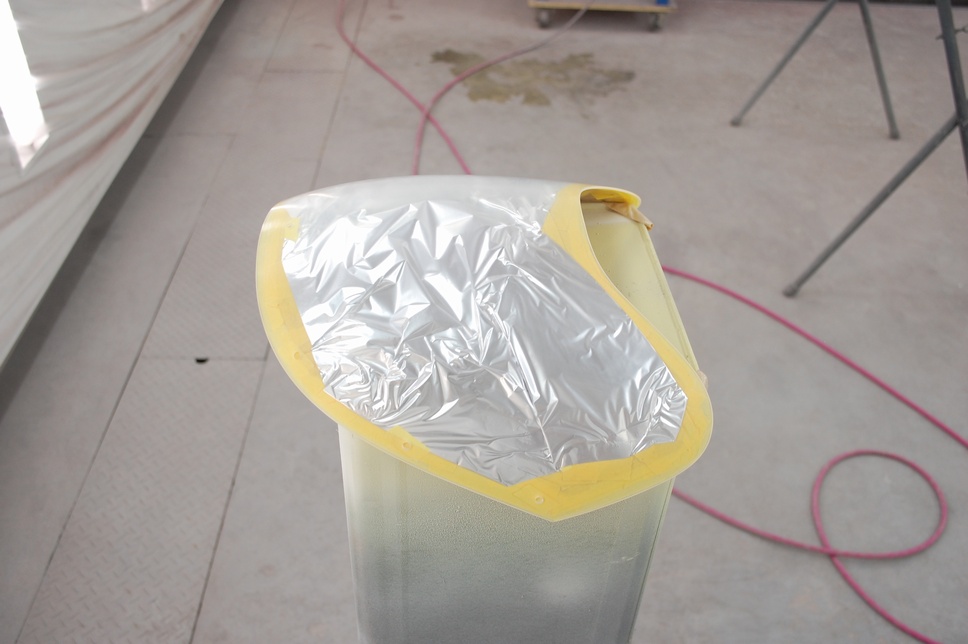上の画像はパネル裏側に反射フィルムを貼っているところで、これは表面からスモーク塗装をしながら濃さが確認出来るようにする為です。他に透明なビニールなどを貼るような事でも代用出来ますが私的にはこの方法が塗り易くてお気に入りです。ちなみに市販のアルミホイルだと傷が付いてしまうのでNGで、その場合は最初にビニールを貼ってから行うと良いかも知れません。今回使っている物は3Mの熱反射シートで、これは柔らかいビニール製?なのでそのまま貼っても大丈夫なのです。