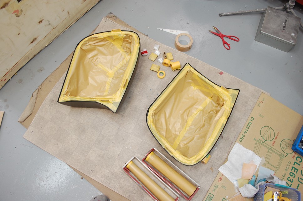 この後には熱を入れて完全硬化させたらサフェーサーを研いで裏側のマスキングをある程度修整しいよいよ本塗りとなります。どうぞもう少々お待ち下さいませ!