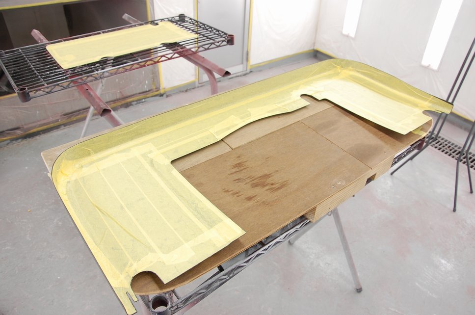 その後60℃40分以上の熱を掛けてサフェーサーを完全硬化させ、#600→#800の水研ぎでラインを整えます。またサフェーサーが塗っていないパネルの裏側や溝の奥なども#800でしっかり足付け処理をしておきます。