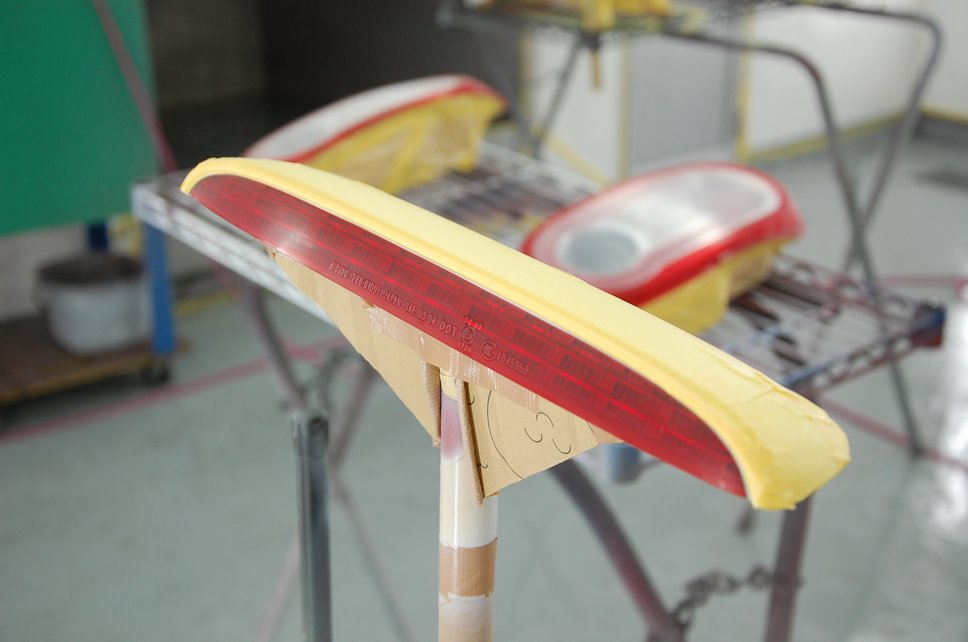 ハイマウントランプは元々赤いレンズで出来た物にボディーカラー(今回は白系)が塗ってある為、赤いレンズ以外の部分をマスキングしています。
