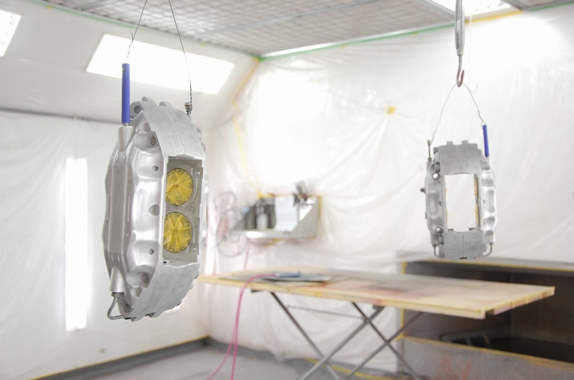 左が先ほど紹介したロータス用のブレンボキャリパーで、右が今回のF50ブレンボキャリパーです。どちらも一緒にいつものブレーキ屋さんにて旧塗膜の剥離(サンドブラスト)→洗浄→マスキングを行って頂きました。