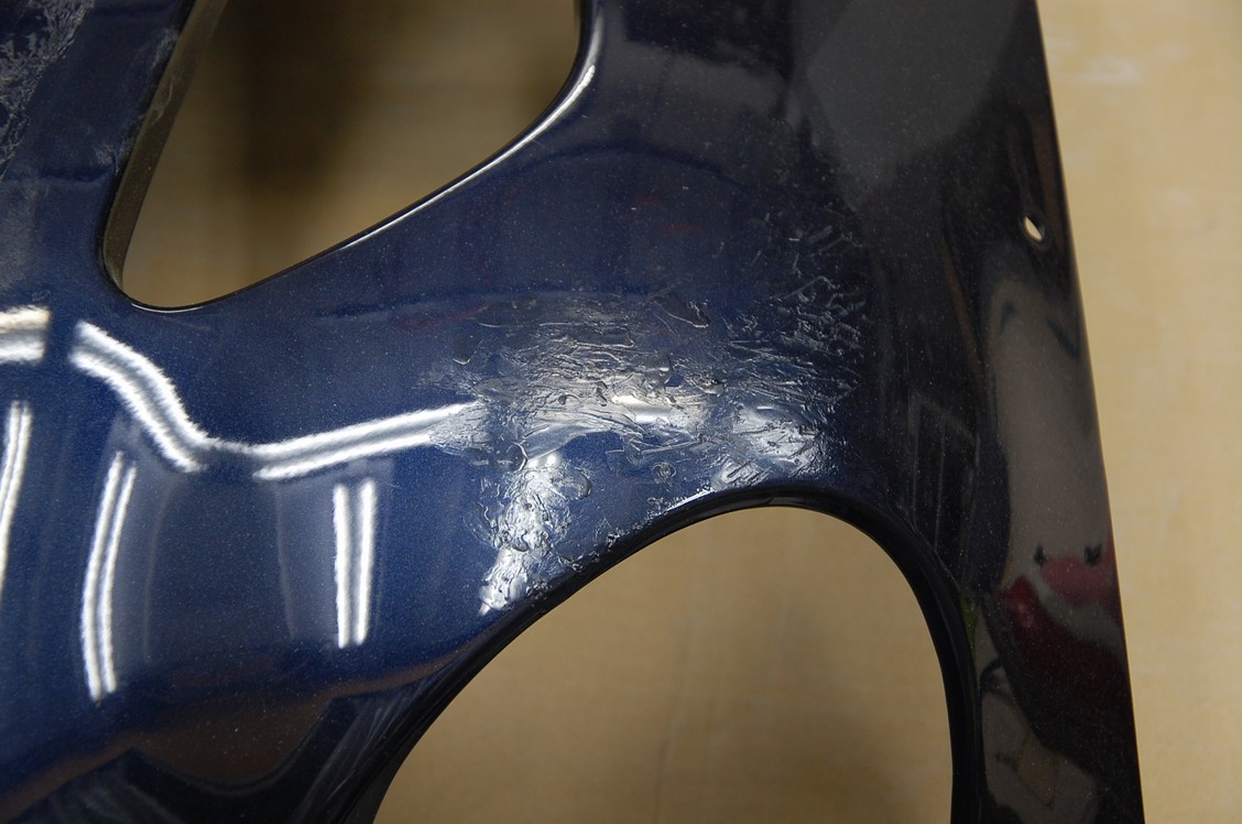 パッと見は綺麗に見えてもフロント周りはどうしても飛び石傷等が多いので修理範囲も大きくなります。車のボンネット一個の傷の為に全面ペーパーを掛けてサフェ―サーを塗るなんて事も良くある事で、飛び石傷は目立たないだけで実は結構沢山あるのです。