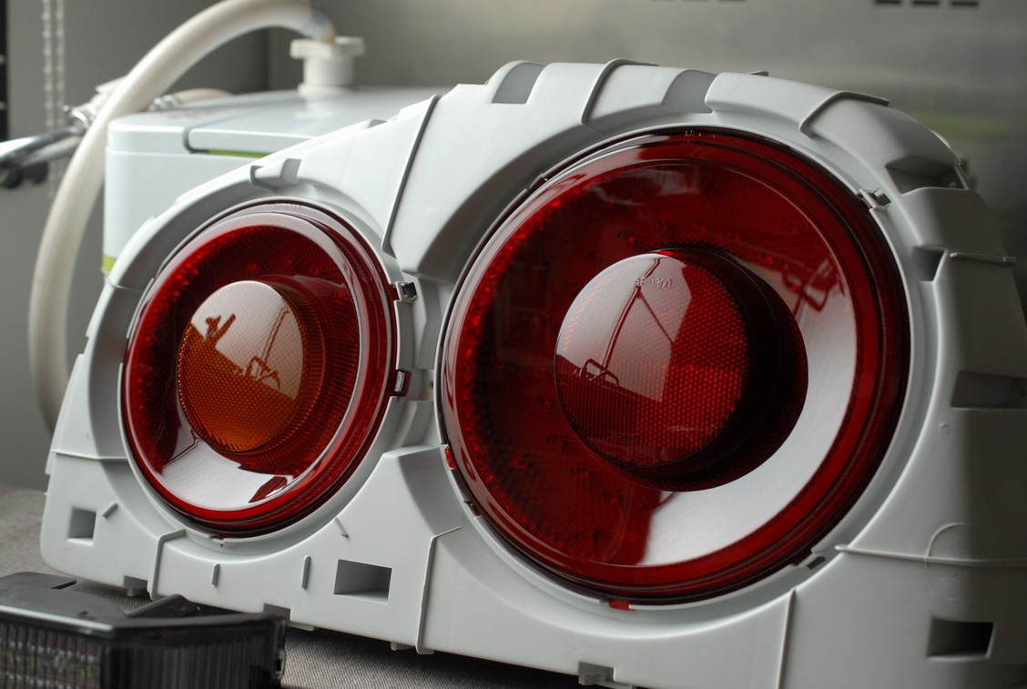 大変お待たせしました!日産スカイラインR34のテールランプ等レンズ類一式のスモーク塗装、本日完成となります。