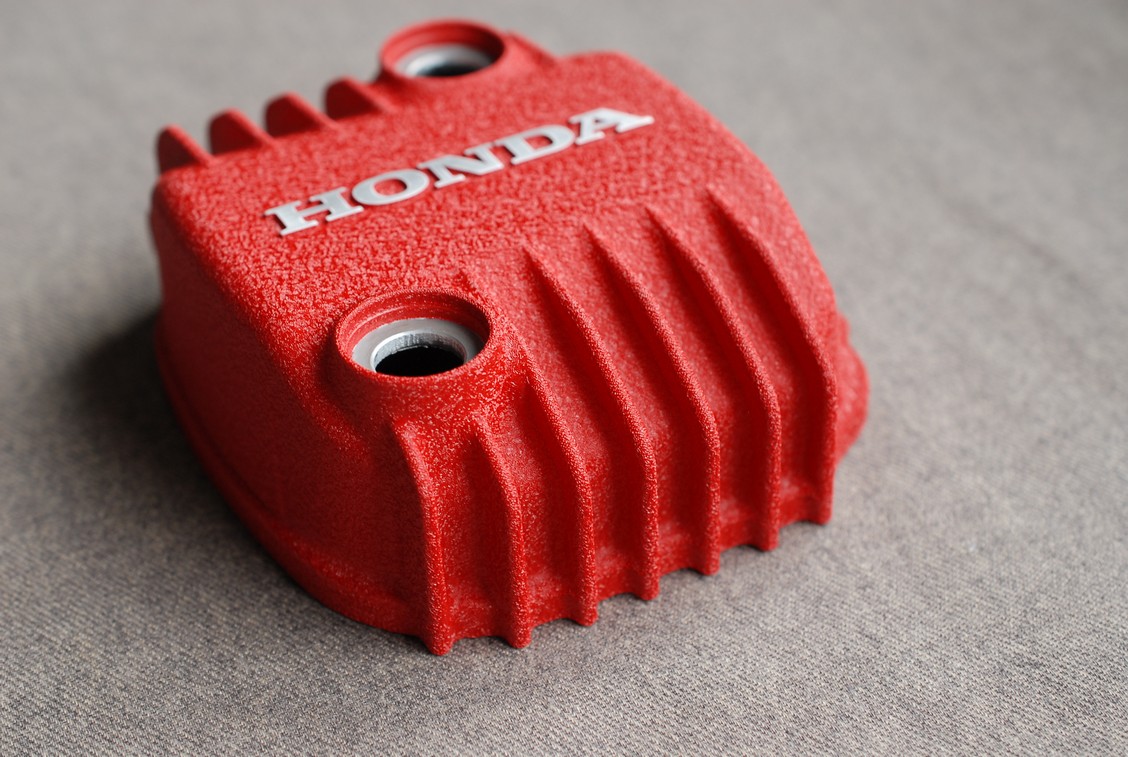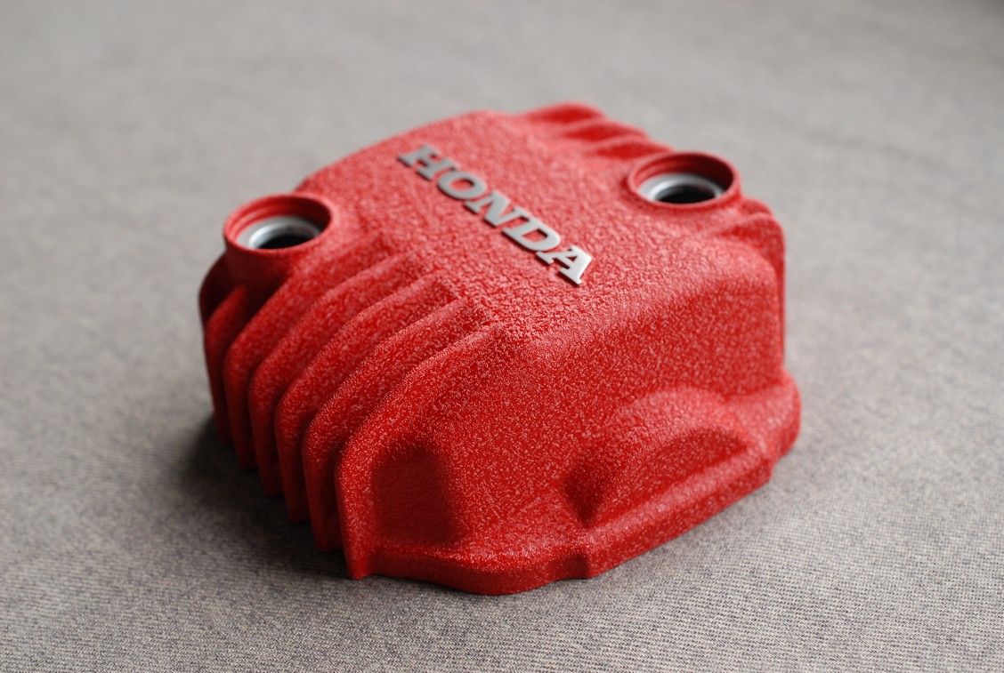 大変お待たせしました!先日HONDAの凸文字部を研磨してクリアーを塗っておいたホンダクロスカブの純正ヘッドカバー、結晶塗装の赤で完成となります。