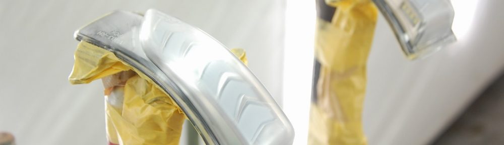 この型の製品は今までにも何度か塗装していて、その特徴としては、中の反射板&白い板で光を反射し易い事、またフチからも光が入る為、見た目よりもスモークが濃くなりがちな傾向にあります。最初に貼ってあったマスキングテープの上に新しいマスキングテープを貼ると、現在どれくらい黒く塗ったのかが判ります。