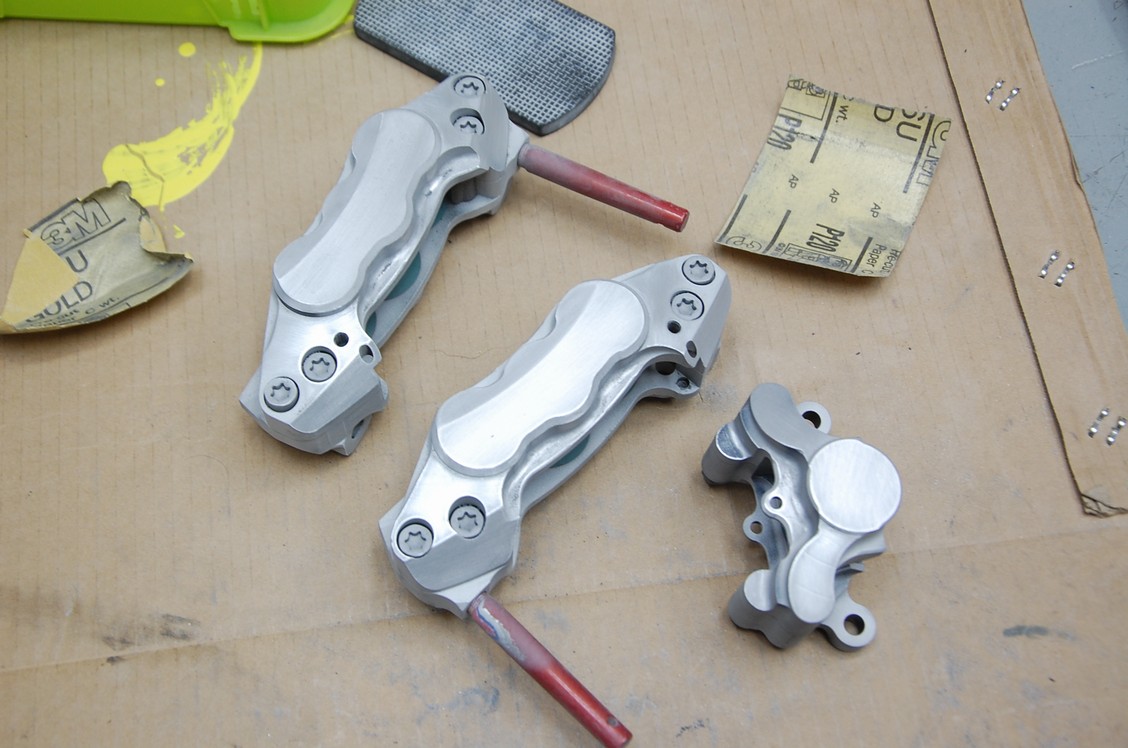 先日サンドブラスト処理までを行っておいた、VMAX1700に装着されるベリンガーのブレ―キキャリパー一式です。