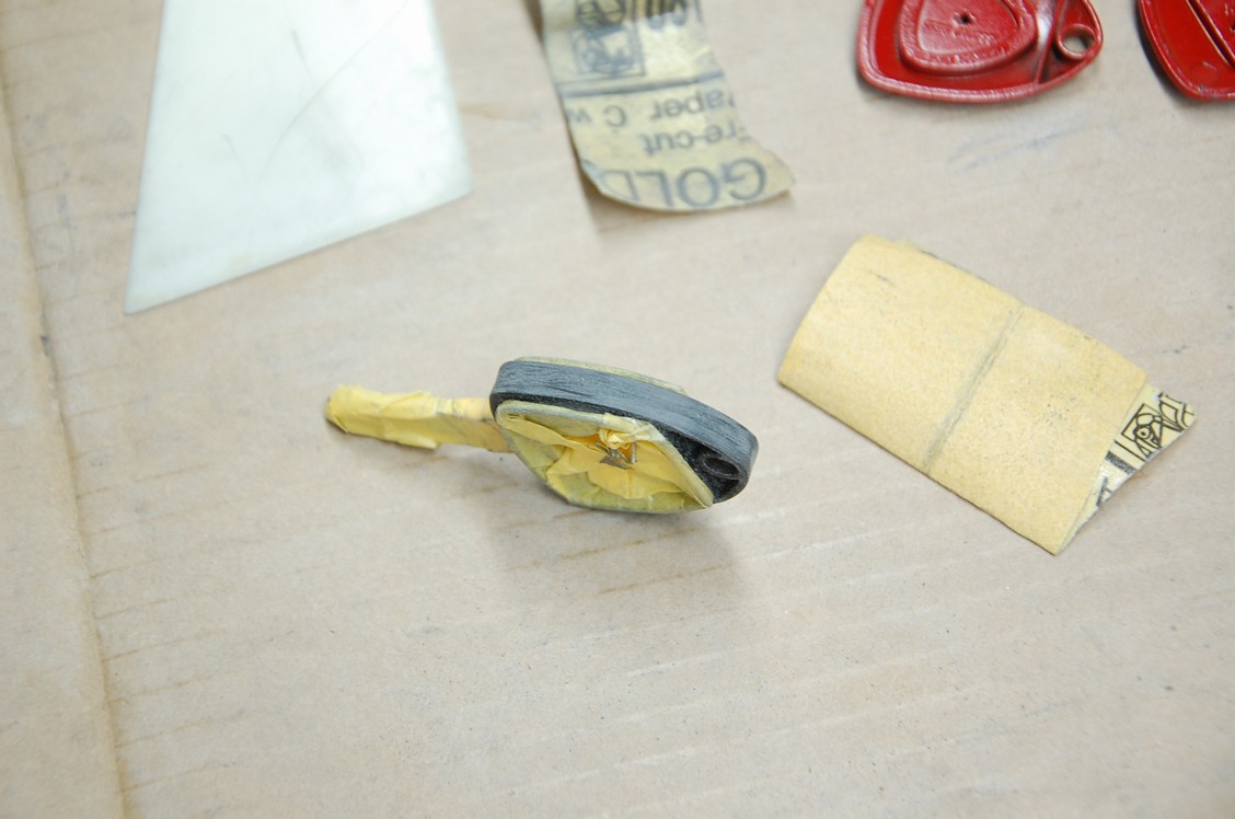 鍵本体にはゴム状被膜のラバーコートが施されていて、残すとチヂレの原因になる為、ペーパーとシンナーを使ってしっかり除去しておきます。