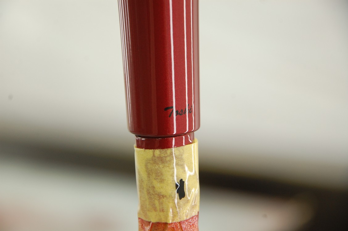 その後工場二階に移動し、ご指定を頂いたロゴを、所定の位置に貼り付けます。
