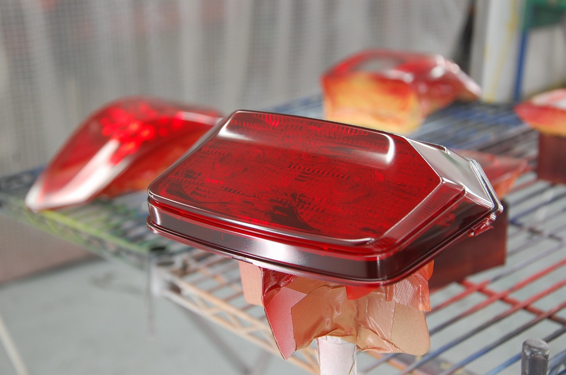 ベースコート用の樹脂に透過性の赤を添加し、コートを重ねていきます。