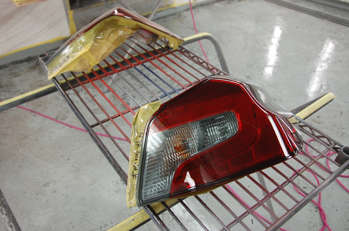 こちらも先日から下準備を進めていたホンダフリード用の純正ハイマウントランプです。「朱色っぽく見える赤に深みを出したい」との事で、「極薄目~薄目の中間、もしくはそれよりも若干薄目」のスモーク塗装でご指定を承りました。