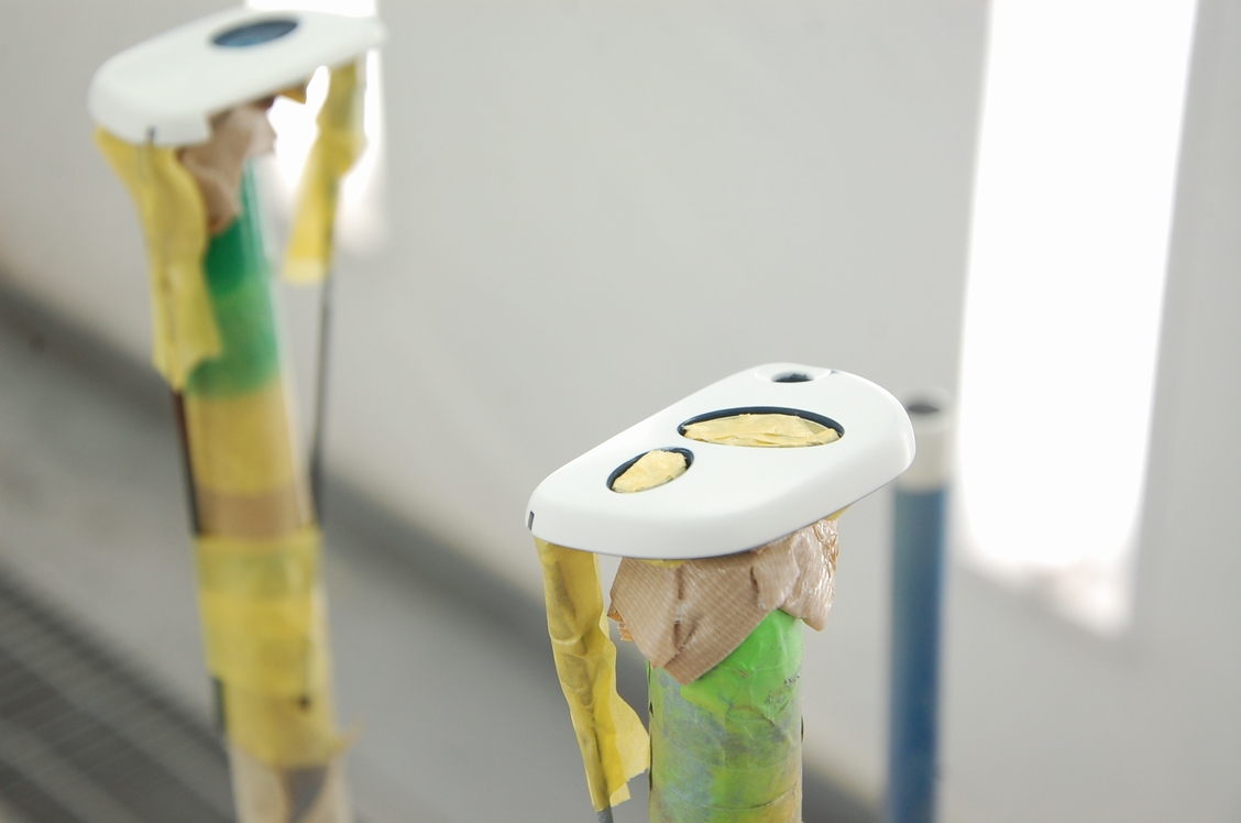 よく乾燥させ、マスキングを貼り直して台にセットします。