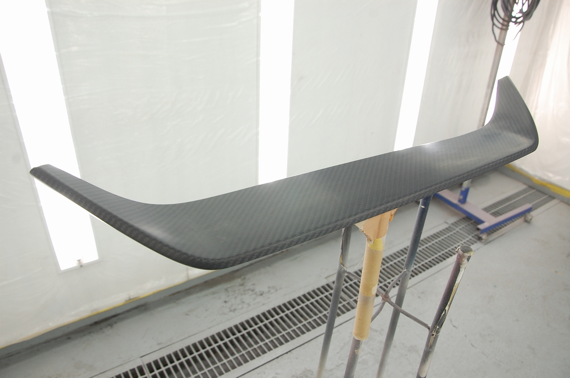 先日クリアーを下塗りしておいた日産スカイラインR35 GT-R用の社外品ウェットカーボン製フロントグリルです。仕様としては通常の本塗りと同じですが、元々あった巣穴などをサフェの代わりにクリアーを使って埋めています。
