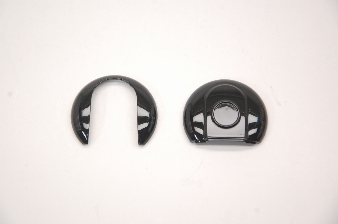 本来であればこのまま分解せず、メッキの上に密着剤だけ塗ってスモーク塗装を塗るとブラックメッキ風で格好良いのですが、そうなるといずれ塗膜が剥がれてしまうので枠はわざわざ艶ありの黒として承っています。