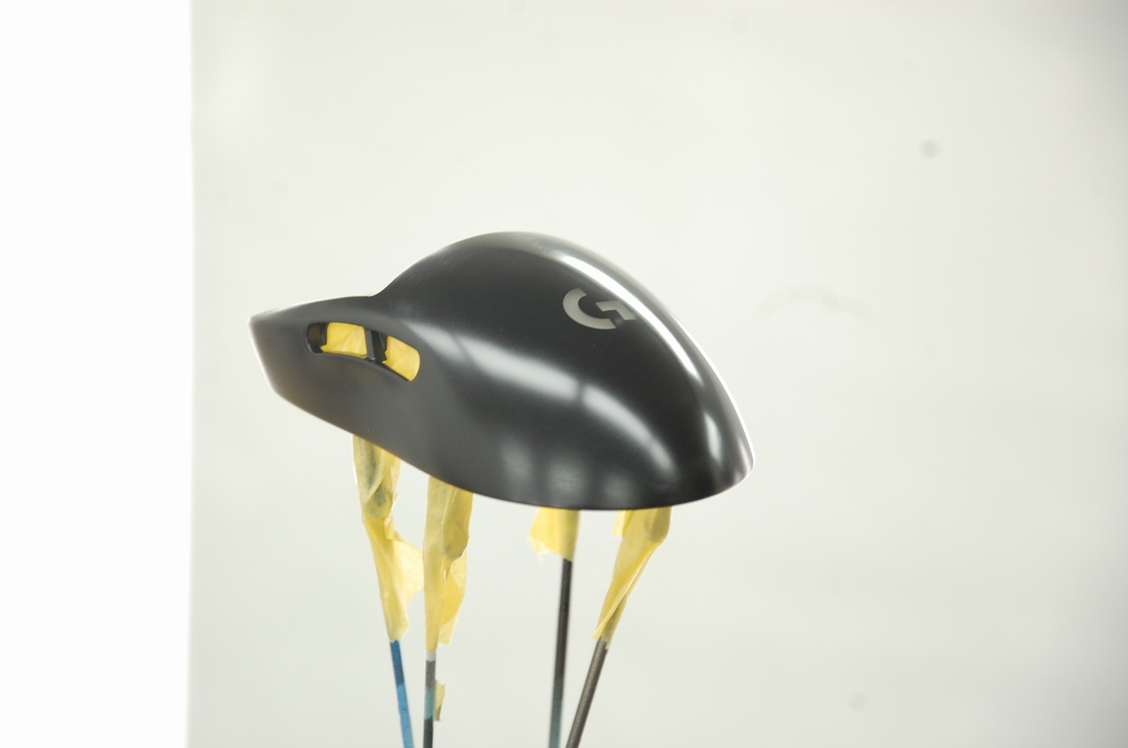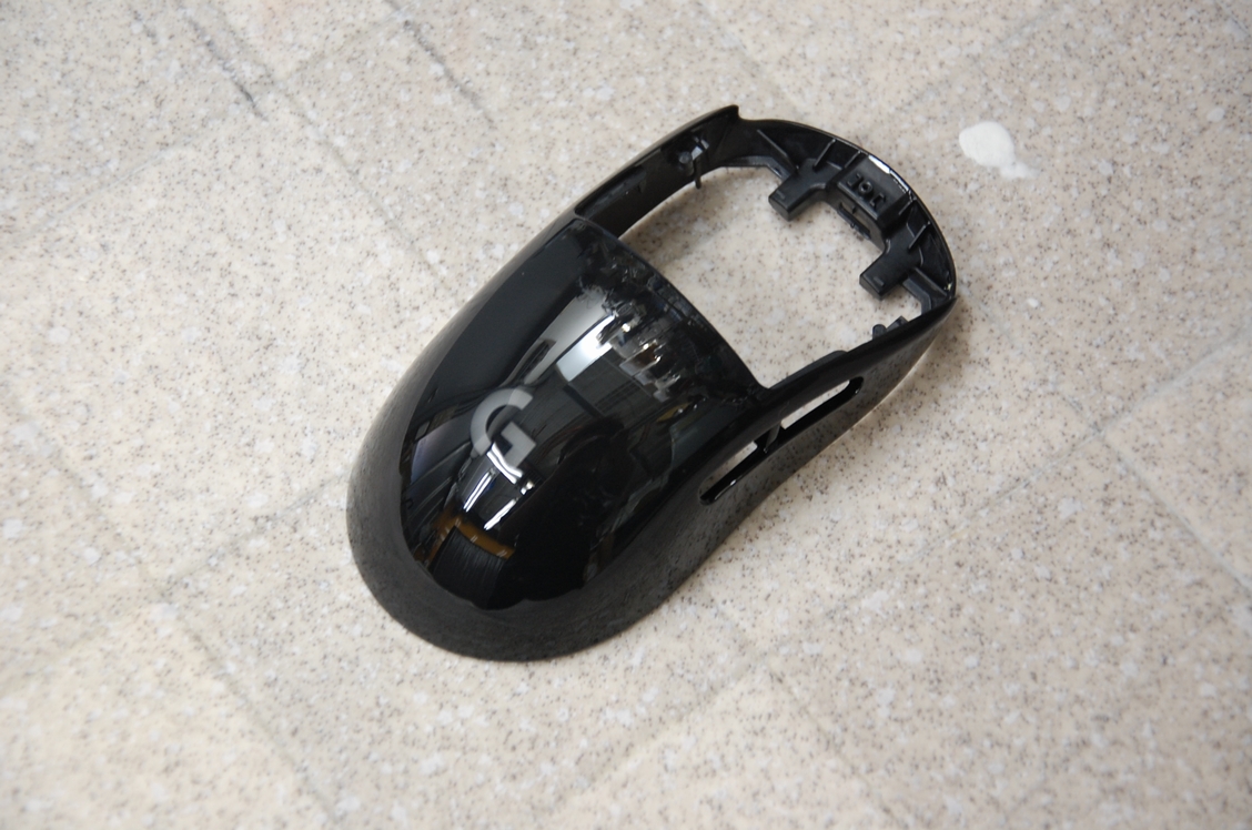 先日下塗りのクリアーを塗っておいたLogicool G PRO wirelessのマウスです。その後60℃40分程の熱を掛けて塗膜を硬化させておきました。