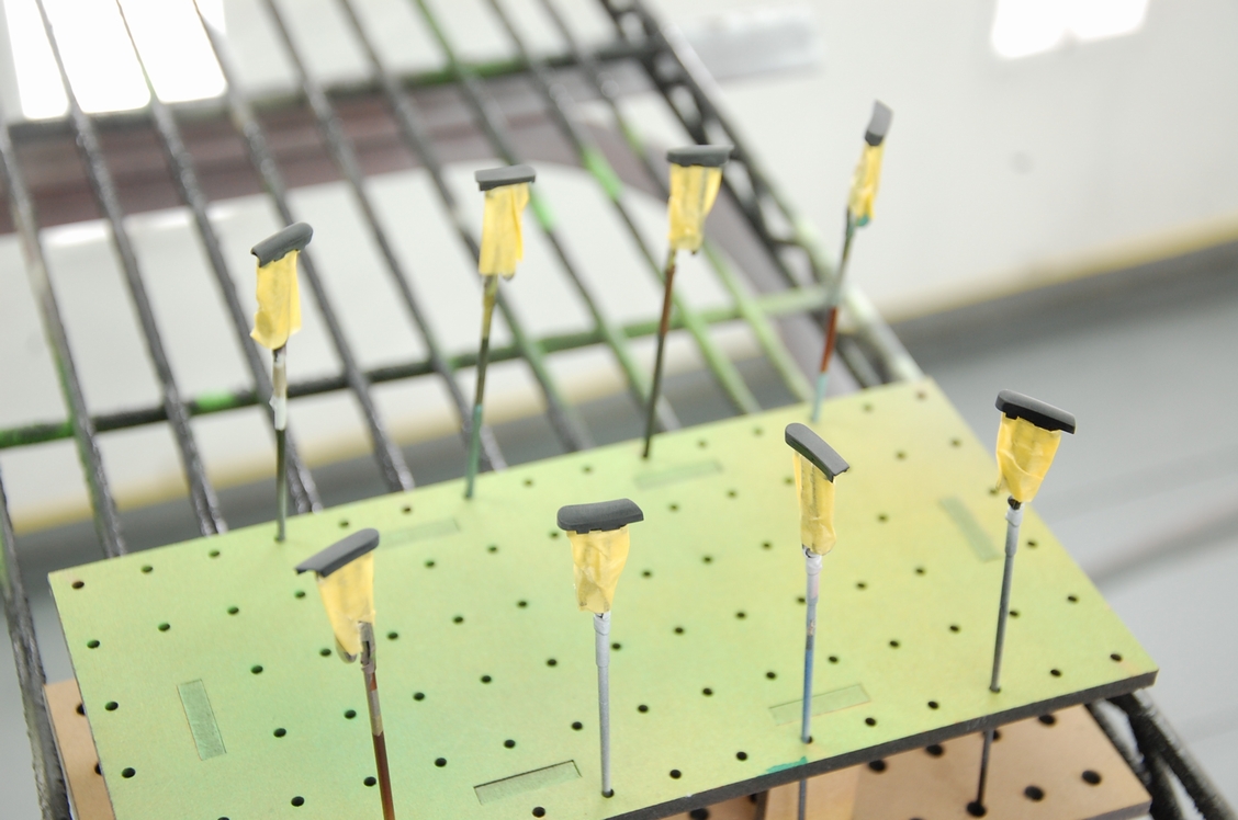 照明を着けて光の透過を見ながらマスキングシートを貼っていきます。