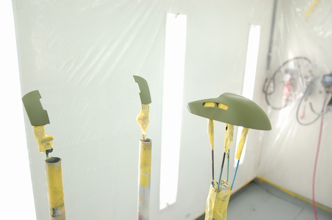 この後は一晩自然乾燥させ、後日60℃40分程の熱を掛けて塗膜を硬化させます。組付けもあるので少し長めに寝かしておく予定です。