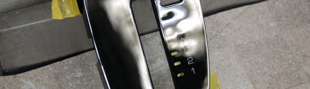 先日二回目のクリアー下塗りを行っておいた日産フェアレディZ32の純正シフトパネルです。その後60℃40分くらいの熱を掛けて塗膜を硬化させておきました。