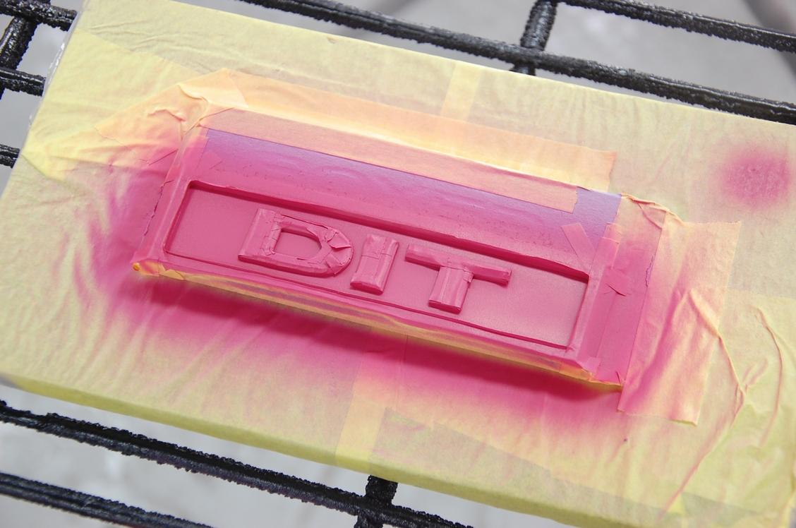 エンブレムプレートも同じく艶消しクリアーで、ただしこちらはクリアーも口径の小さいエアーブラシを使います。