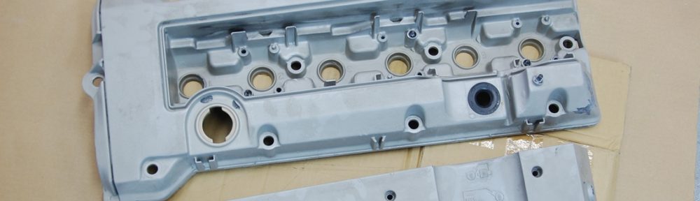 先日お預かりしておりましたW124メルセデスベンツのヘッドカバーとインジェクションカバー(プラグカバー)です。その後アルカリ洗浄槽に浸け置きをしておきました。