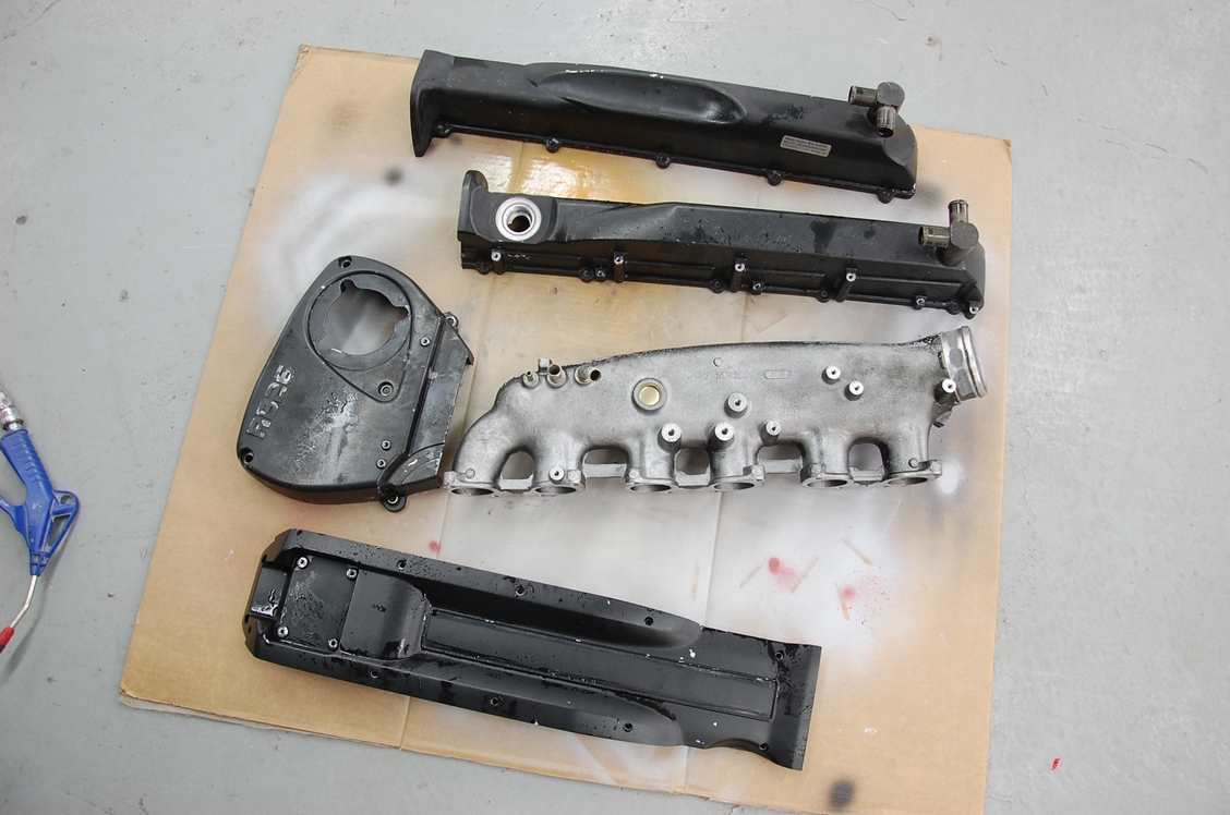 先日お預かりしておりました日産RB26エンジンパーツ一式です。アルカリ洗浄槽に数日浸けて油分を取っておきました。