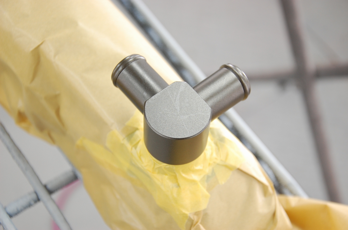 そしてサージタンクのホースパイプ部ですが、ここは予めシルバーメタリック(STANDOX SPFシルバー)を塗っておいた物を、