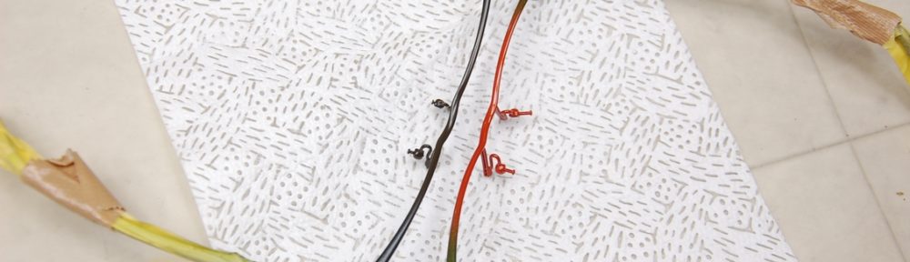 先日テンプル部の本塗りを終えていたアランミクリのメガネフレーム2本です。その後60℃40分程の熱を3回程掛けて塗膜を硬化させておきました。一回熱を入れて直ぐだとマスキングの跡が付いたりするので余計に熱を入れています。