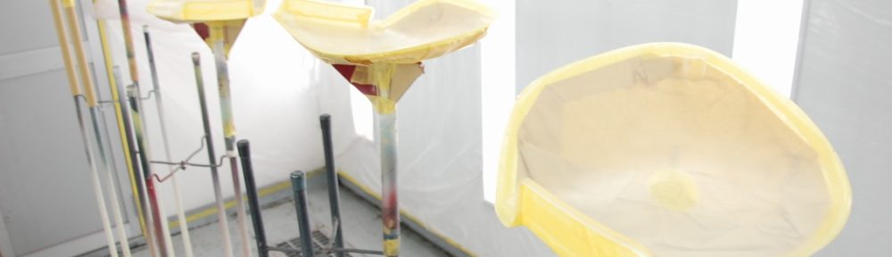 かなり古い物なので全体的に傷や飛び石傷が多く、それが裏側にも達している為、両面共にクリアーを塗装します。