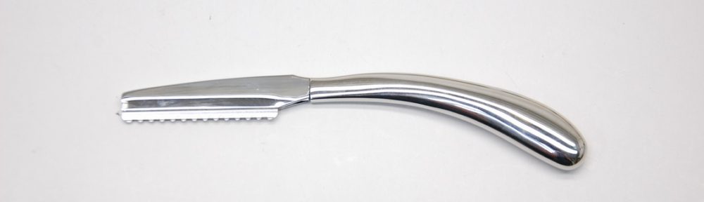 最初にお問合せ頂いた時にはてっきり鋏の事と思っていましたが、こちらのレザーは美容師さんが使われる剃刀となります。