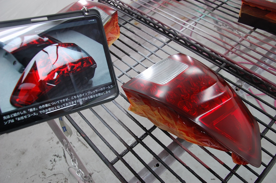 先日下準備を行っていましたスバルインプレッサGHの純正テールランプ一式です。