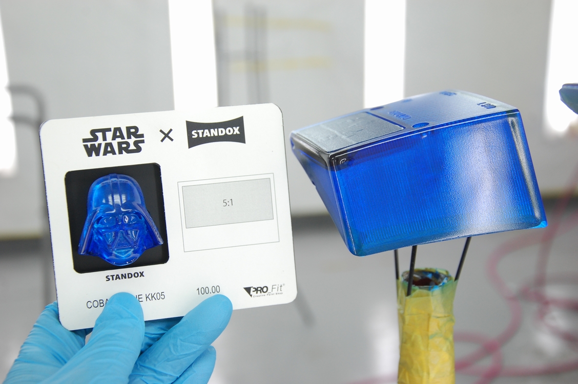 プラスチックプライマー塗装後、透過性の青=ブルーキャンディーを塗布します。