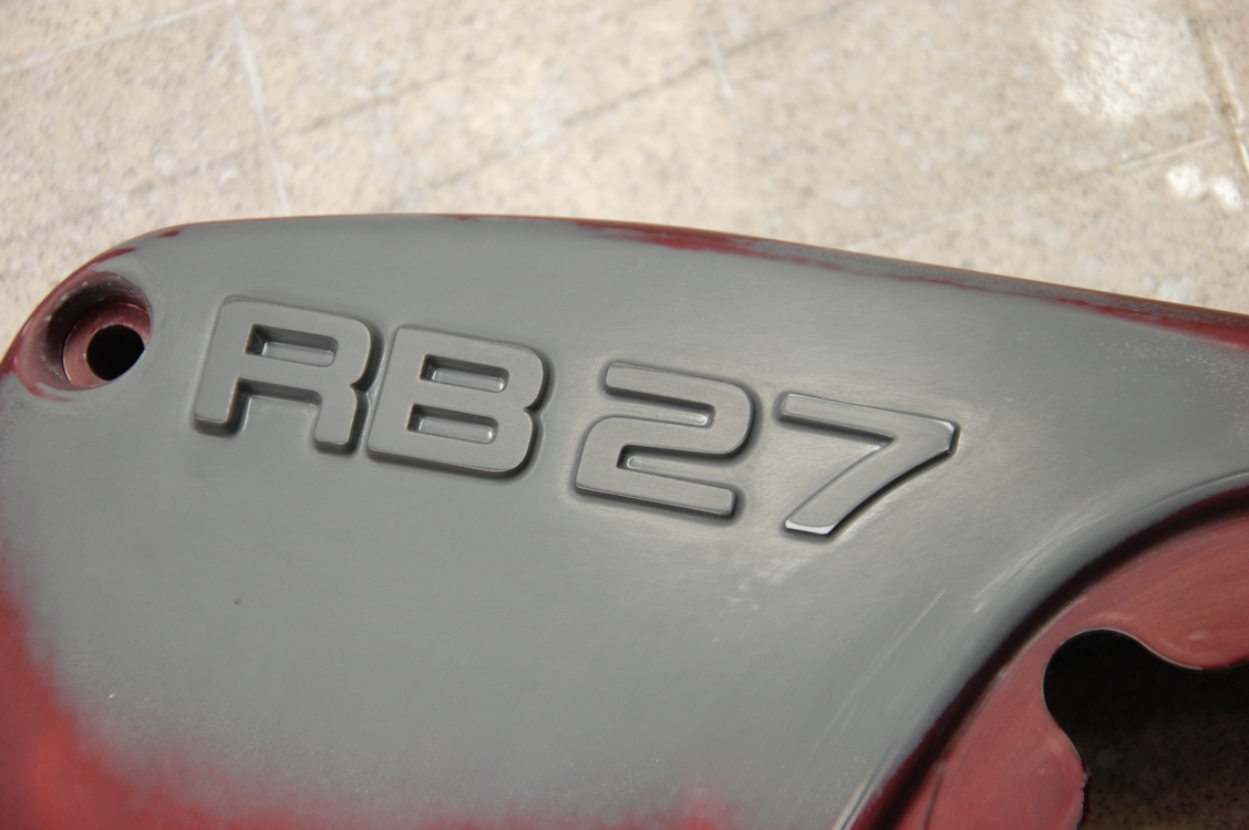 先日旧塗膜の剥離を行っておいた日産BNR34純正の中古品プラグカバーです。