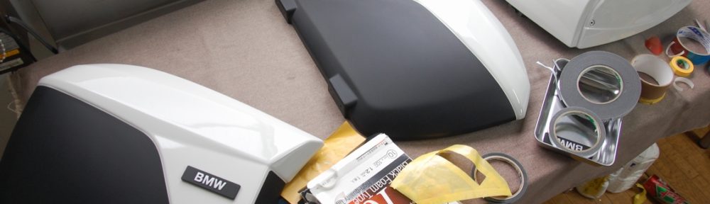 先日本塗りを終えていたBMW R1200RT LC用のバンザイモータース社製パニアケース蓋と、純正スモールトップケースの蓋です。