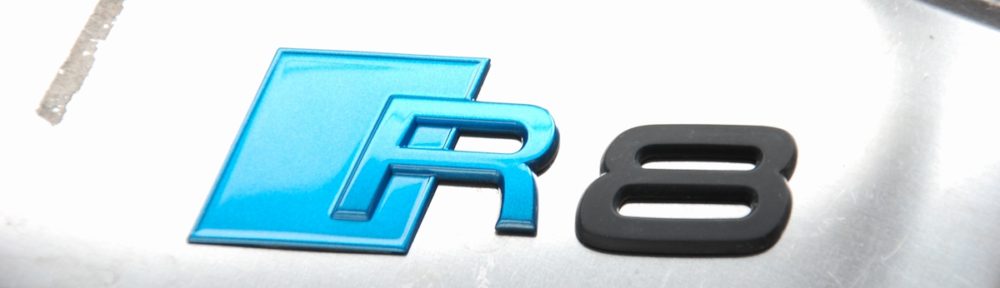 先日「□+R」のエンブレムに艶ありのブルーメタリックを塗装しておいたアウディR8の純正エンブレムです。