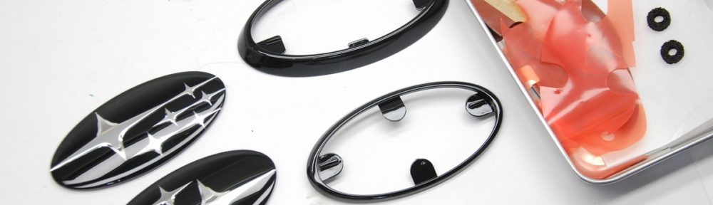 先日本塗りを終えていたスバルエンブレムのアクリルプレートとメッキ枠です。その後60℃40分程の熱を掛けて塗膜を硬化させておきました。