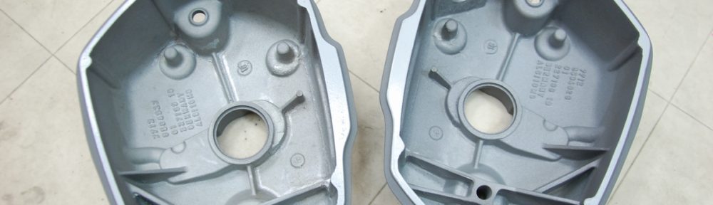 先日下準備を行っておいたたBMW R nineT2バルブスタイルシリンダーヘッドカバー一式です。その後全体をシンナーで洗い流すようにして脱脂洗浄しておきました。