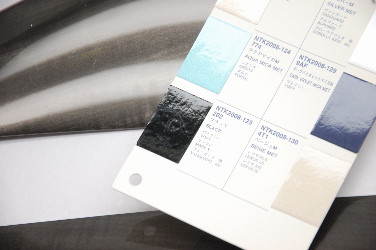 色につきましては予め色見本帳をお貸出しし、その中からこちらのトヨタ「ブラック」(カラーコード:202)で承りました。艶あり仕上げ、クリスタルクリアーの仕様で承っています。