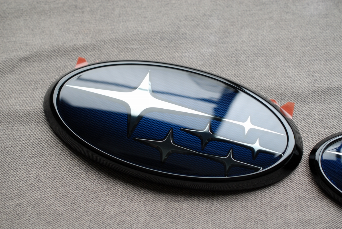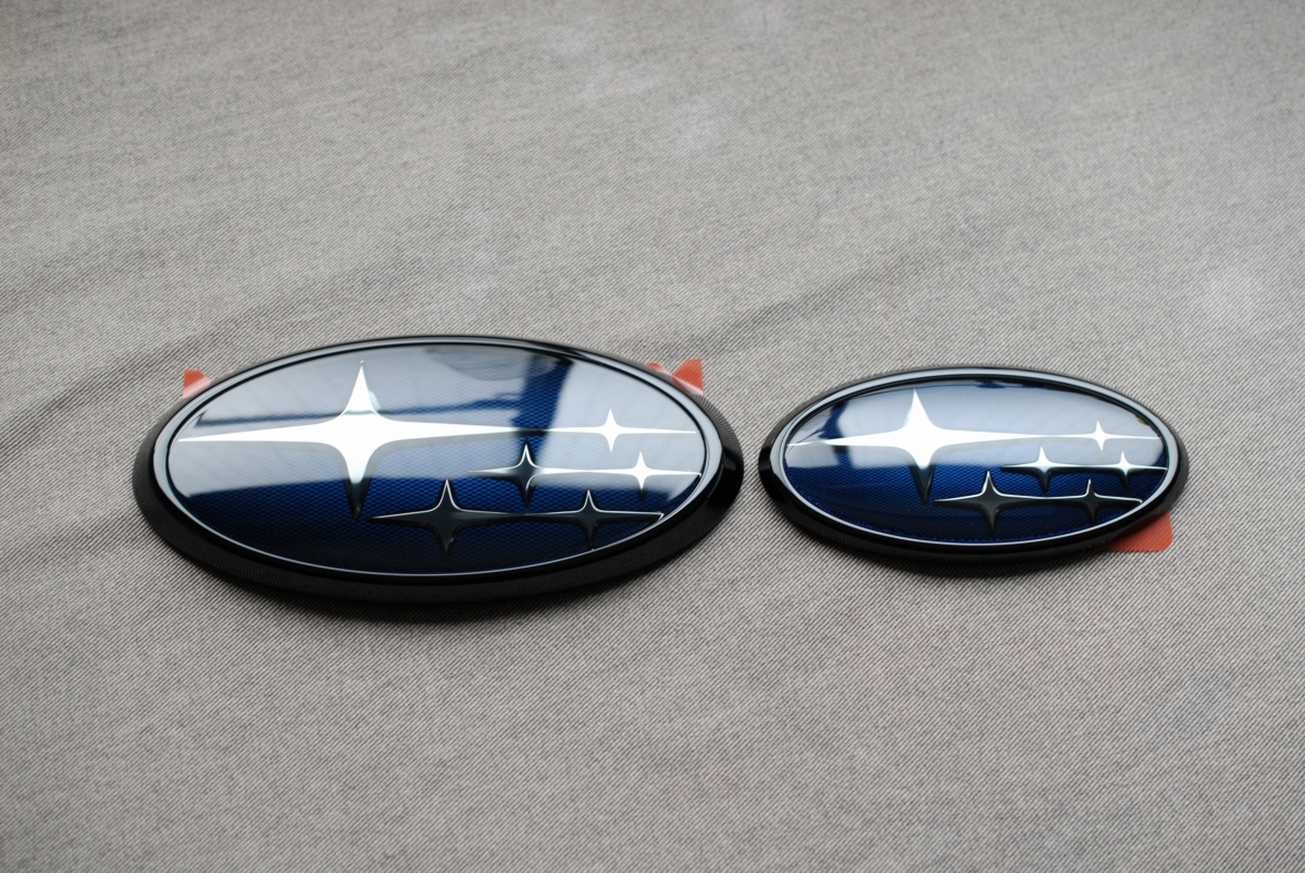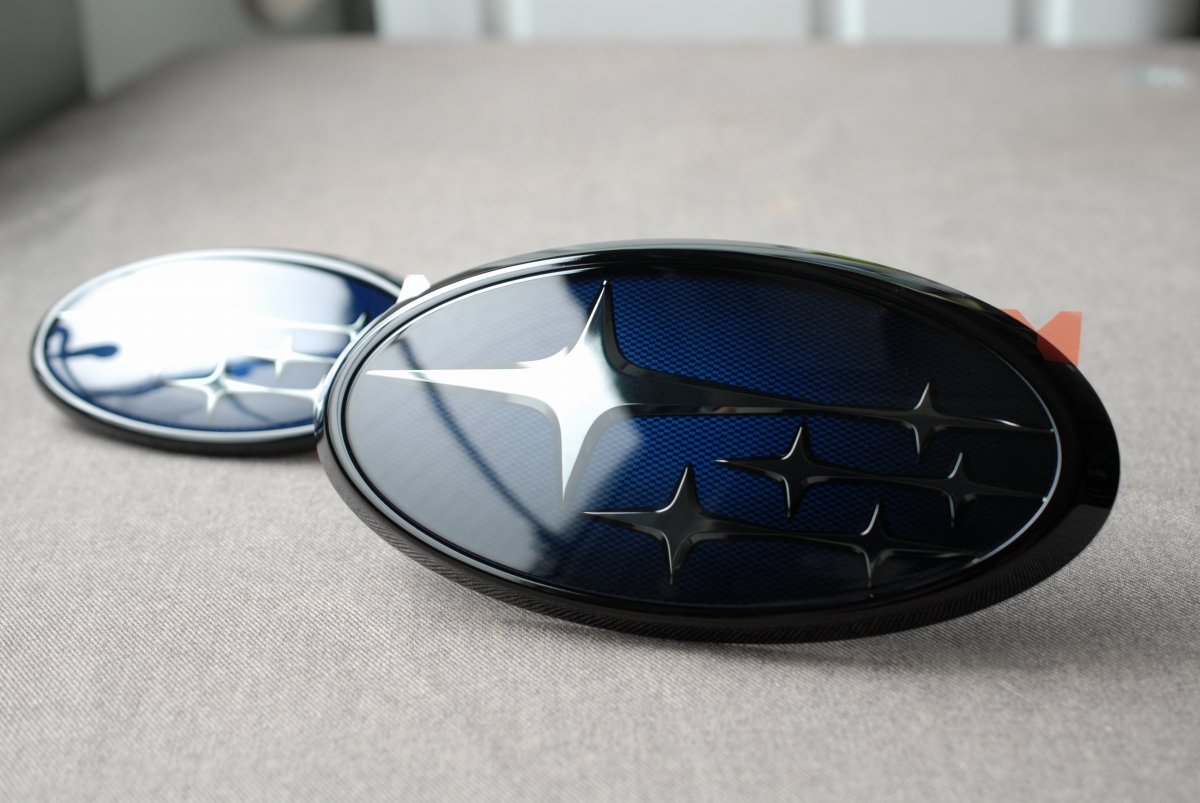 先日本塗りを終えていたスバルSKフォレスター用の純正エンブレムのメッキ枠とアクリルプレートです。