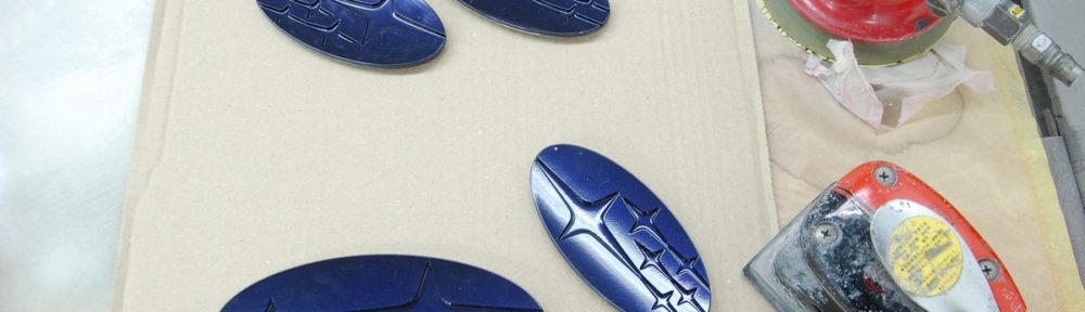 現在進行中のスバルエンブレムです。上の画像では2セットですが、もう1台分(そちらは一個のみ)を含め、現在以下の3案件を並行して作業しています。