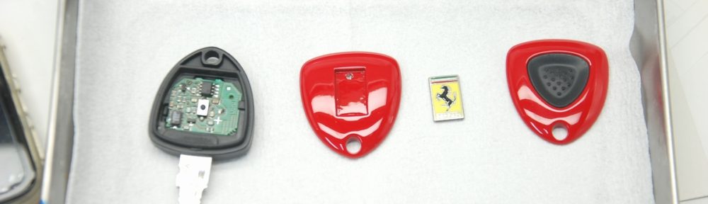 先日本塗りを終えていたフェラーリ430のリモコンキーです。その後60℃40分程の熱を掛けて塗膜を硬化させておきました。