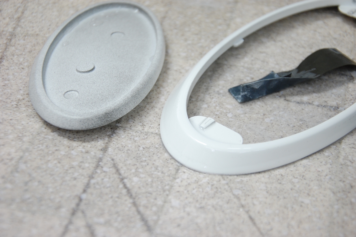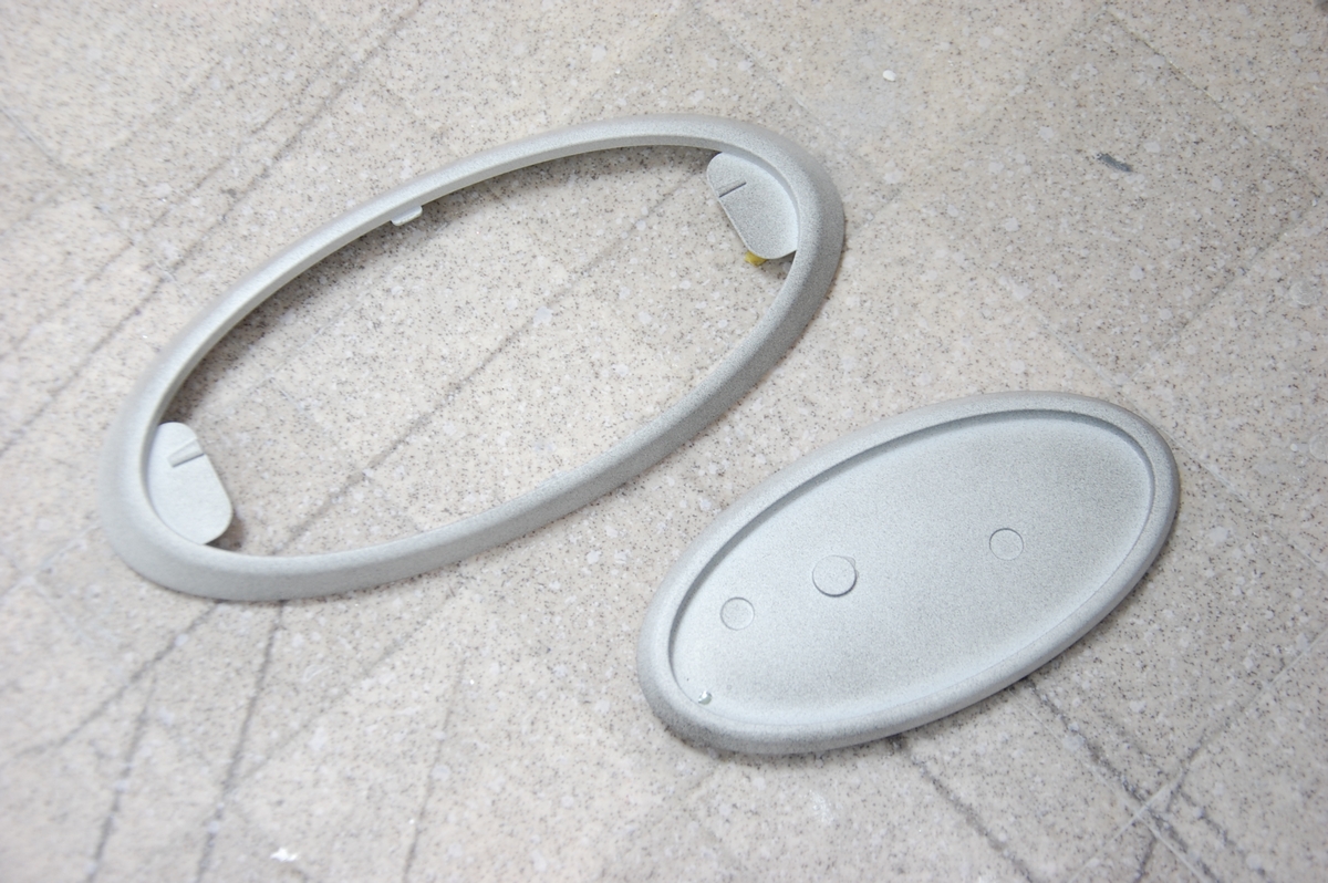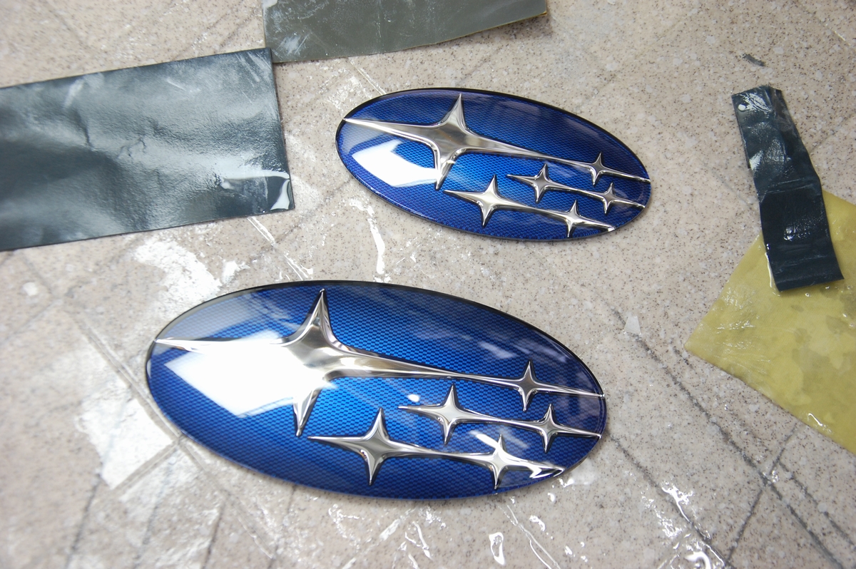 先日プライマーとサーフェサーを塗っておいたスバルSKフォレスターエンブレムのメッキ土台部です。アクリルプレートを外すために穴を開けていたので、それを構造用エポキシ接着剤で塞いでおきます。
