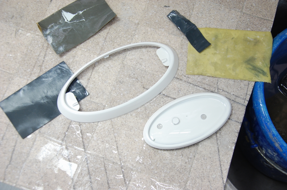 #800で表面を均したら#1500でペーパー目を消し、フチなどは当たりの柔らかい布状研磨副資材(アシレックスレモン)で足付け処理をしておきます。