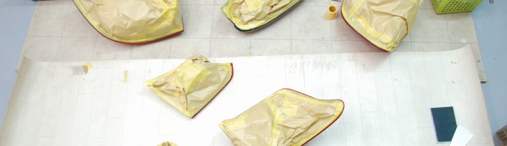 こちらのダイハツミラのテールランプは黒い枠の部分の塗装も承っていますので、その部位のフチまでをマスキングします。