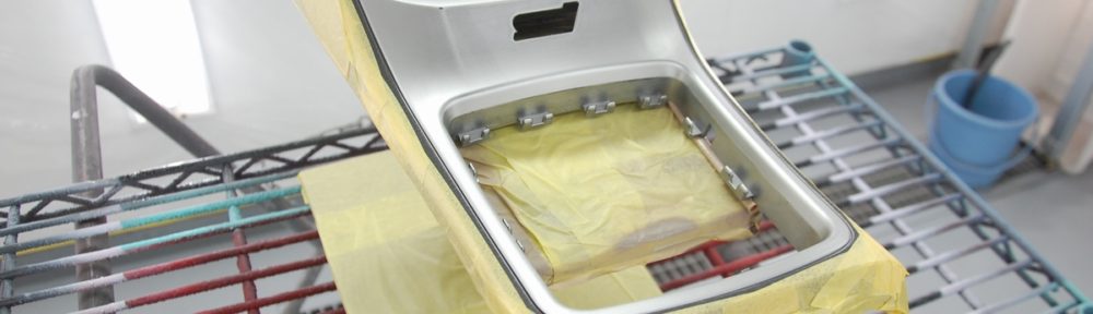 尚、奥の小物入れ部分(ゴムマットが敷かれる箇所)は元々艶消し黒となっているので、最後にそこも同じようにするよう艶消し黒で塗装を行います。