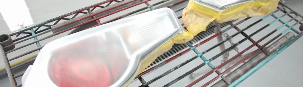 大よその工程としては、プラスチックプライマー2コート→レッドキャンディー4コート→プラスチックプライマー2コート→スモーク2コート→クリアー=2コート、合計12コートの塗装となっています。まあ通常プラスチックプライマーはコート数には入れないので、ベース6コート+クリアー2コートといった感じです。